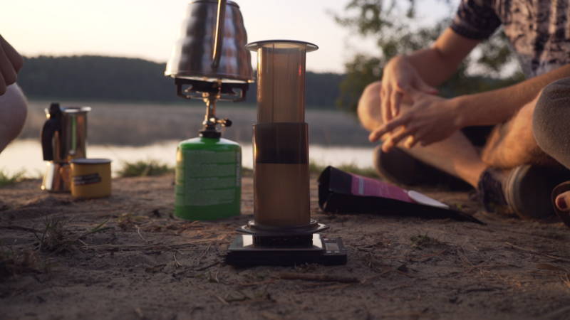 Wie für den Zeltplatz gemacht! Mit der Aeropress brühst du unterwegs aromatischen Filterkaffee. Sie ist der leichteste und kompakteste Zubereiter, ideal für lange Wanderungen oder wenn du mit wenig Gepäck reisen willst.