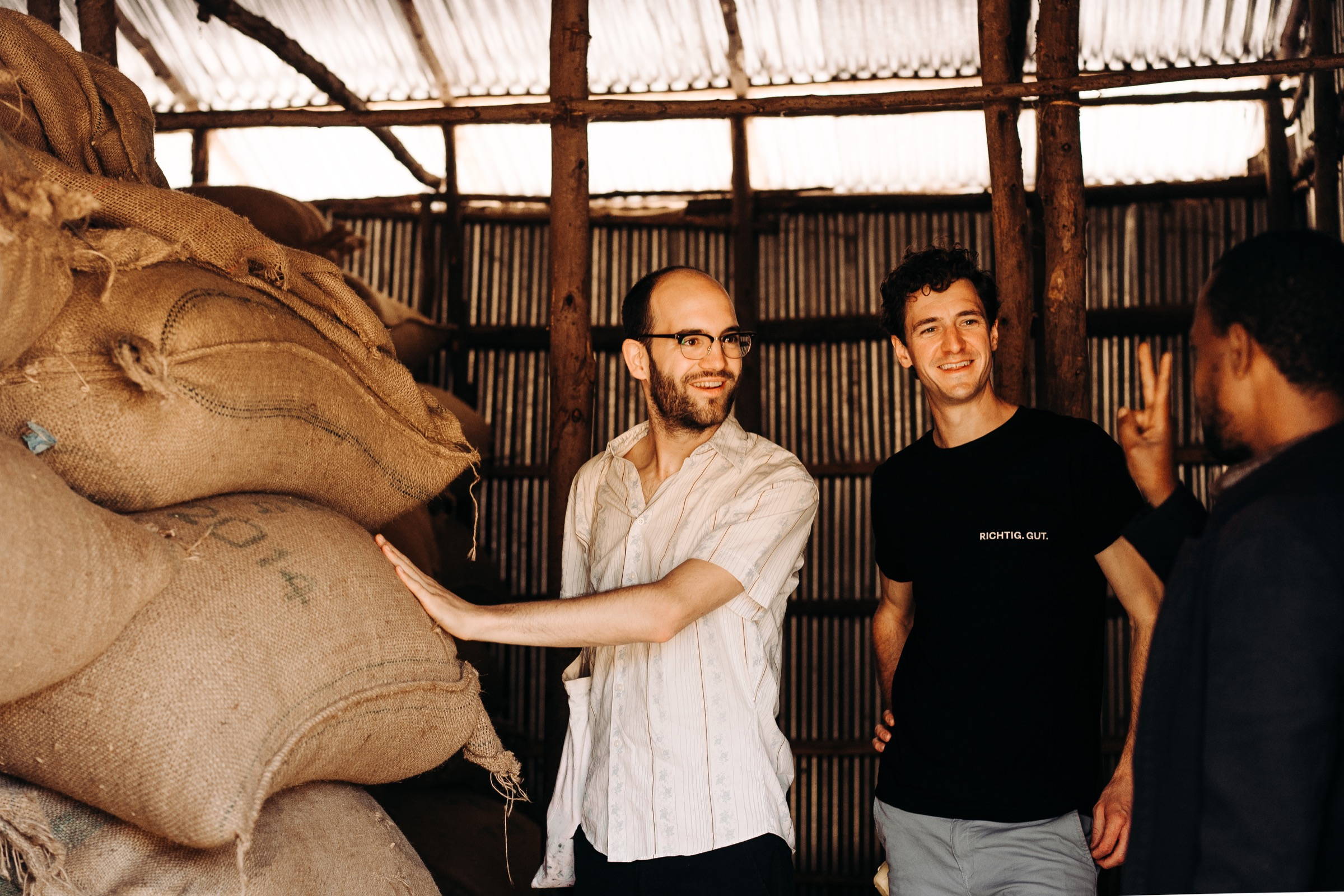 In Äthiopien lagern die gefüllten Kaffeesäcke in Hallen der Kooperativen. Von dort aus wird der Kaffee mit LKWs nach Addis Abeba zu den Lagerhäusern der jeweiligen Unions transportiert. Vor dem Export wird dort der Kaffee in der Drying Mill maschinell vom Parchment getrennt. Anschließend werden defekte Bohnen sowohl maschinell als auch von Hand selektiert. Die ausgewählten Bohnen werden erneut in 60 kg Jutesäcke gefüllt und auf LKWs nach Dschibuti gebracht. Von dort aus verlässt der Kaffee Afrika mit dem Schiff und trifft in Containern im Hamburger Hafen ein. Dort lagert der Kaffee, bis er nach Berlin in unsere Rösterei transportiert wird. Dort rösten wir die Kaffees jede Woche frisch und besonders schonend, bevor er bei dir Zuhause ankommt.