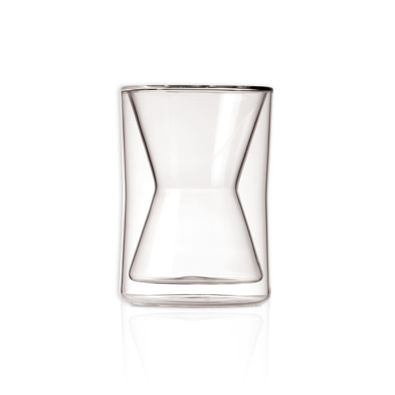 The cup is based on the iconic Chemex design and holds 300 ml. The double-walled construction keeps your favorite drink warm for an extra-long time, while the clear borosilicate glass emphasizes the minimalist look.