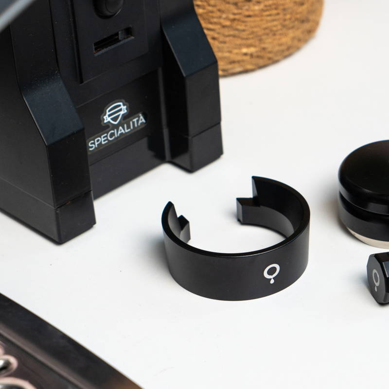 The Coffee Circle Dosing Funnel keeps your ground coffee exactly where it belongs – like a silent guardian at the edge of the portafilter. Securely fixed in place, it catches any spillage during grinding, ensuring clean, relaxed working. Suitable for 58 mm portafilters, made of aluminum and equipped with magnets for a reliable hold.